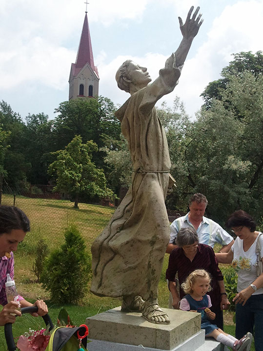 Trojsúsošie v nadživotnej veľkosti. Treťou postavou je Mária Magdaléna. Skláňa sa nad Kristovou prerazenou rukou, ktorú zároveň drží vo svojich dlaniach. Nedotýka sa jej však priamo, ale cez kúsok odevu. Podobne ako keď kňaz udeľuje požehnanie s Monštranciou.